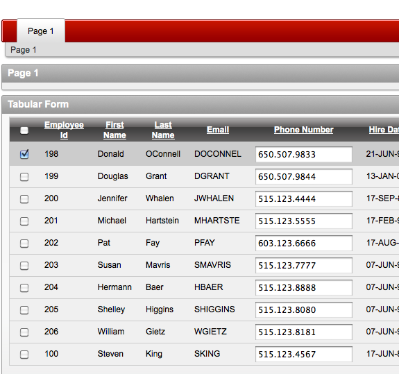 Let's examine first in pictures what Apex (Apex 4.0.2 in my case) does when it creates a tabular form report based on the EMPLOYEES table in the HR schema (I will skip some intermediate screens to cut the story short):